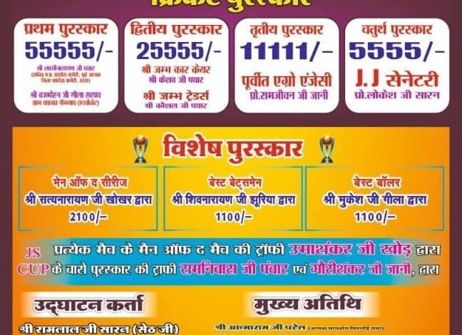 जिला स्तरीय JS CUP SEASON-1 क्रिकेट लीग 8 दिसम्बर से