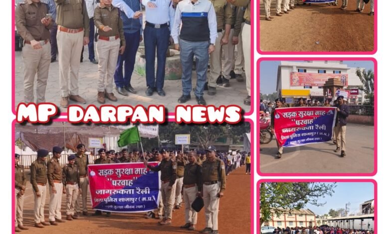 श्रीमान पुलिस अधीक्षक महोदय के शाजापुर मध्य प्रदेश निर्देश पर सड़क सुरक्षा माह अंतर्गत यातायात जागरूकता रैली का आयोजन: