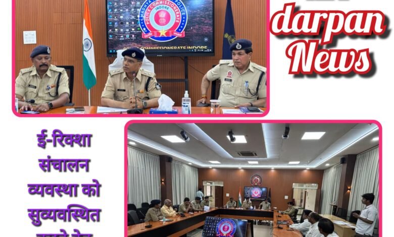 ● इंदौर शहर में यातायात व्यवस्था को अधिक सुगम, सुरक्षित एवं व्यवस्थित बनाने के उद्देश्य से आज दिनांक को पुलिस कंट्रोल रूम, पलासिया के सभागृह में ई-रिक्शा संचालन व्यवस्था संबंधी एक महत्वपूर्ण बैठक आयोजित की गई।